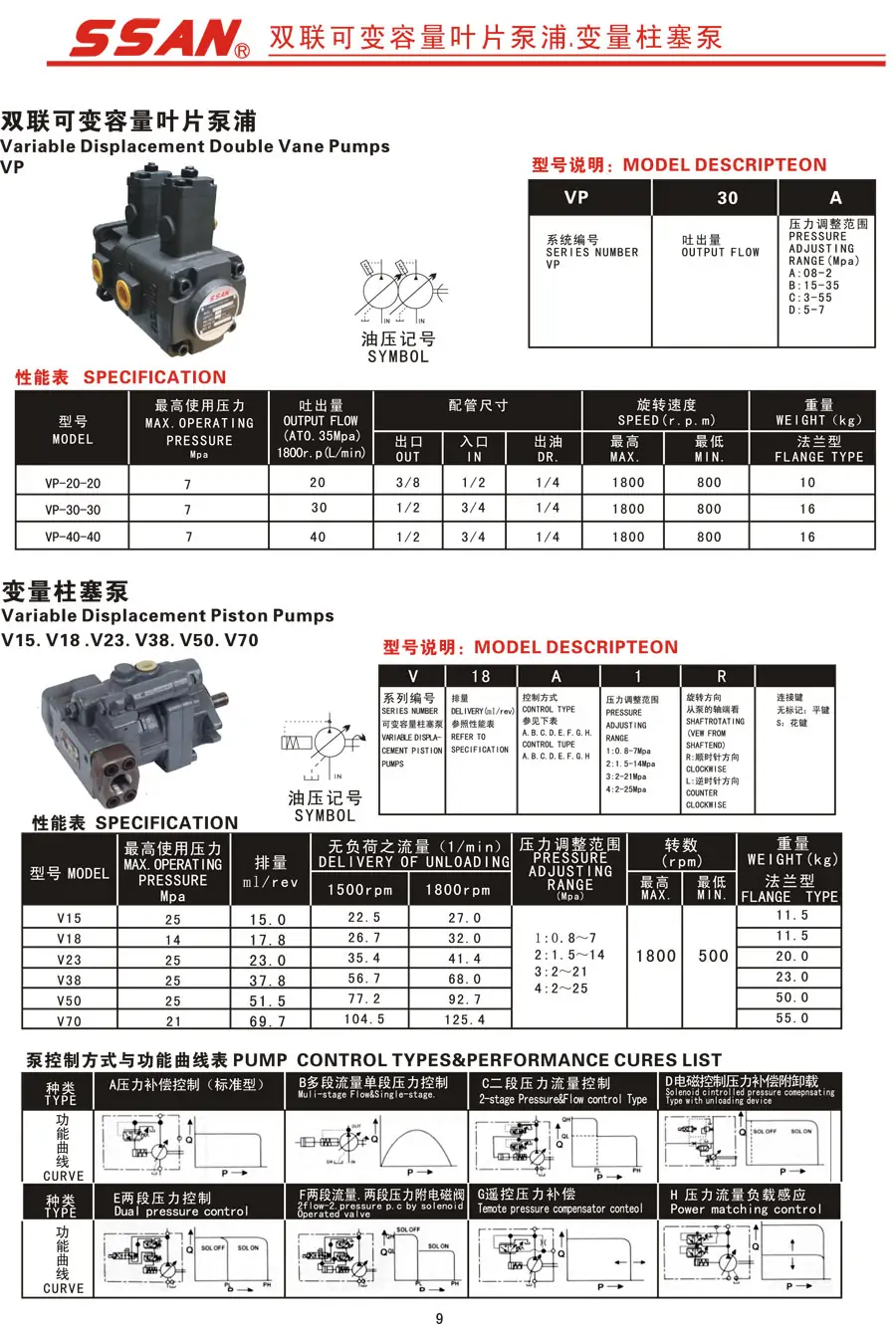 SSAN液壓泵 高壓/低壓葉片泵 柱塞泵 導閥電磁溢流閥