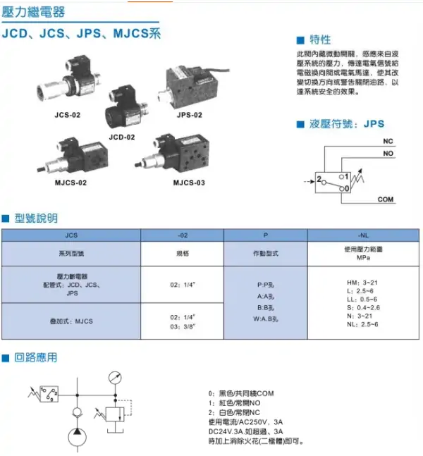 JUNCHUNG駿全興 壓力繼電器 油壓開關 JCS-02N JC-02H/NL/NLL