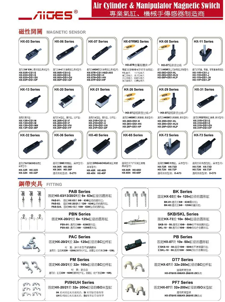 AIGES磁性開關HX-20系列有:HX-20R,HX-20RD,HX-20N,HX-20P;