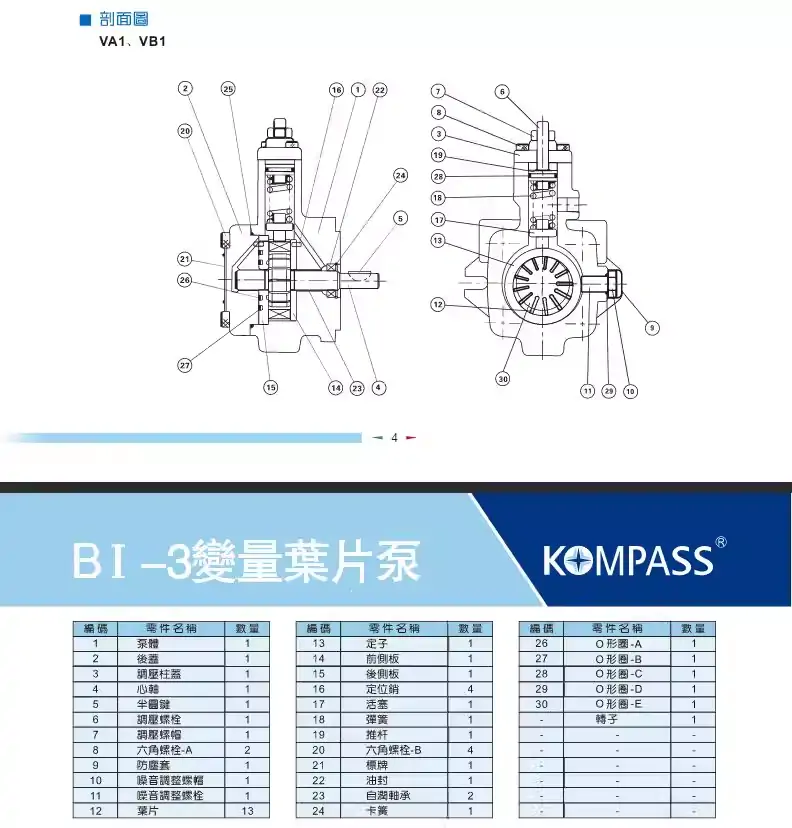 VB1-20F-A3 KOMPASS康百世VD1-30FA2葉片泵VE1-40-FA1油泵VA1-12F