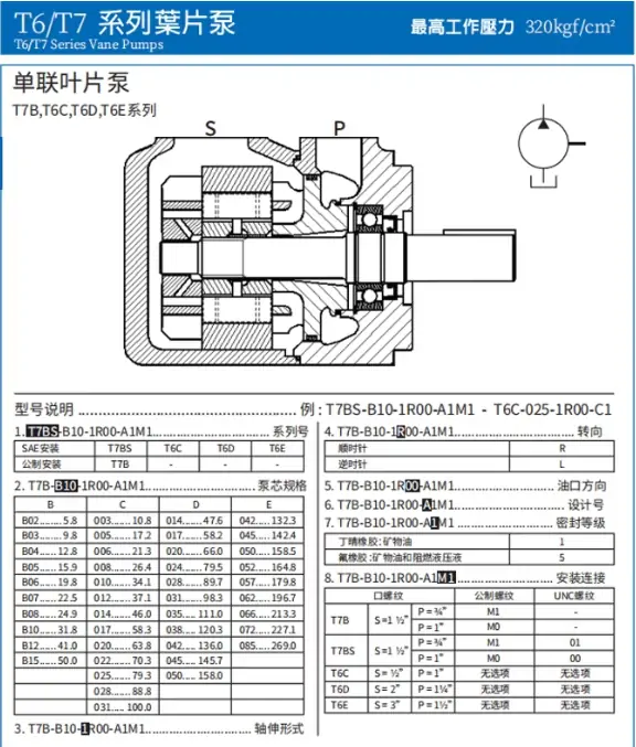 DENISON丹尼遜T6E-042/062/066-1L00/1L01/1L02/1L03-A1/B1油泵