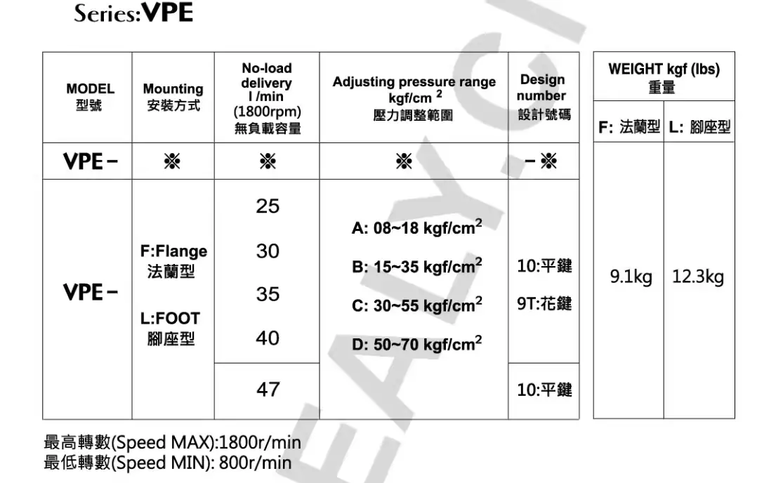 EALY戈力VPE變量葉片泵F/L08 12 15 20 30 40A B C D-10/9T
