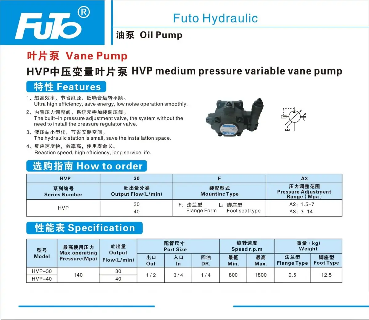FUTO葉片泵PV2R1-14/17/19/23/25/28/31-FR低噪音油泵PV2R2