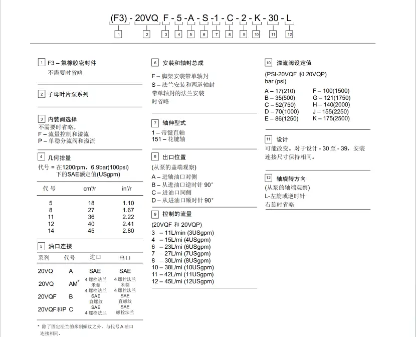 9、産品制式:為適應國際通用標準,外聯接尺寸一般為英制尺寸,進、出油口法蘭螺絲為美制標準,隨産品配備在産品包裝箱內,切記不可丟失,更不可使用公制螺絲,容易損壞泵體內螺紋。