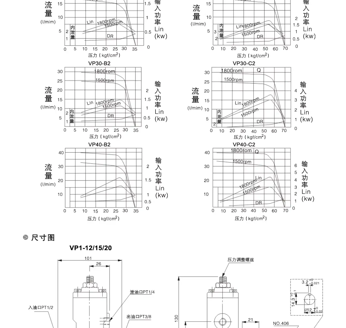 - 按流量選型號(VP-08/12/15/20/30/40)