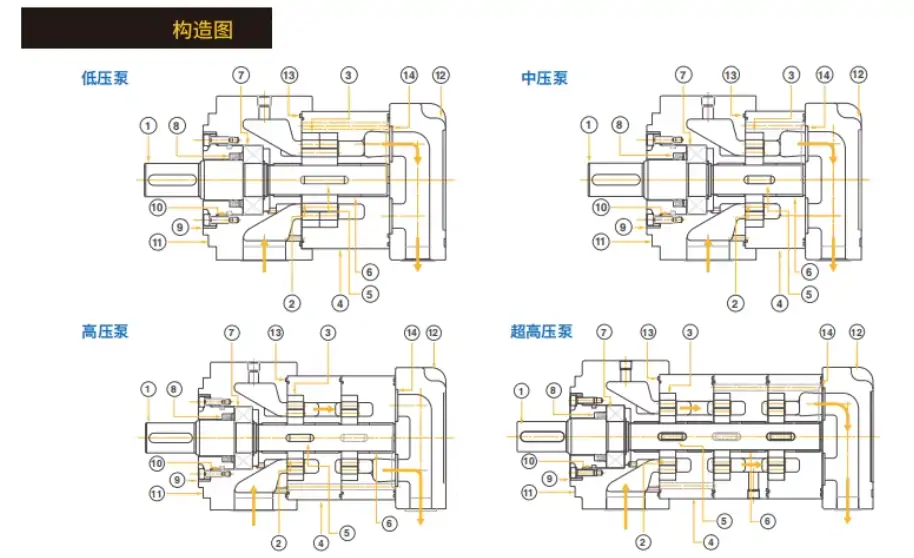 - 采用與住友QT系列相同的內嚙合齒輪,運轉平穩、壓力脈動極小,適合精密機床冷卻系統。